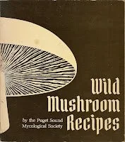 Cage's personal library, housed here at the John Cage Trust, was full of books about mushrooms, many for use in the kitchen. One of his favorites was this one here -- Wild Mushroom Recipes (1976), put out by the Puget Sound Mycological Society, edited by Pauline Shiosaki -- obviously pre-dating his devotion to macrobiotics. Look below for three randomly drawn recipes from this sweet little collection.